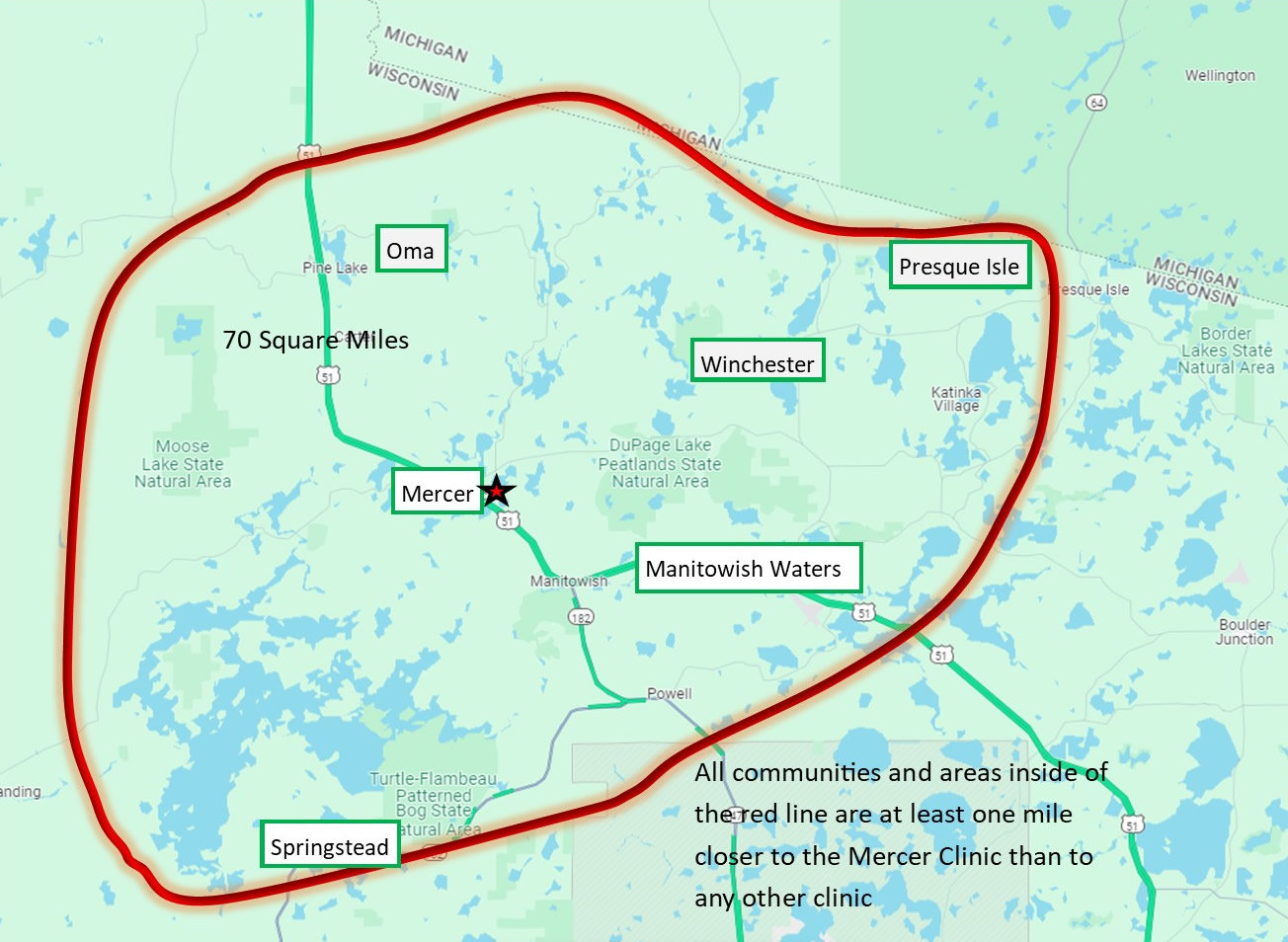 The Northern Highland Health Foundation Inc. is a nonprofit 501(c)3 organization that was founded in 2024 by and is governed by a volunteer board of directors to support the communities of Manitowish Waters, Mercer, Oma, Presque Isle, Sherman, and Winchester.